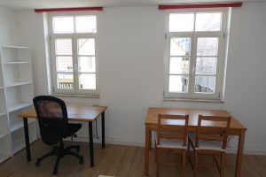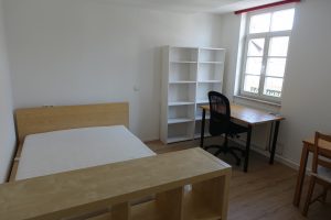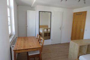 Das Zimmer Nummer 3 ist unser größtes Zimmer mit ca. 18 m². Es ist mit einem Bett, einem Kleiderschrank, Schreibtisch, Esstisch und einem Regal ausgestattet. Der Boden wurde im Frühjahr 2019 gegen modernen Design Vinyl ausgetauscht. Das Zimmer hat zwei große Fenster und ist daher schön hell.